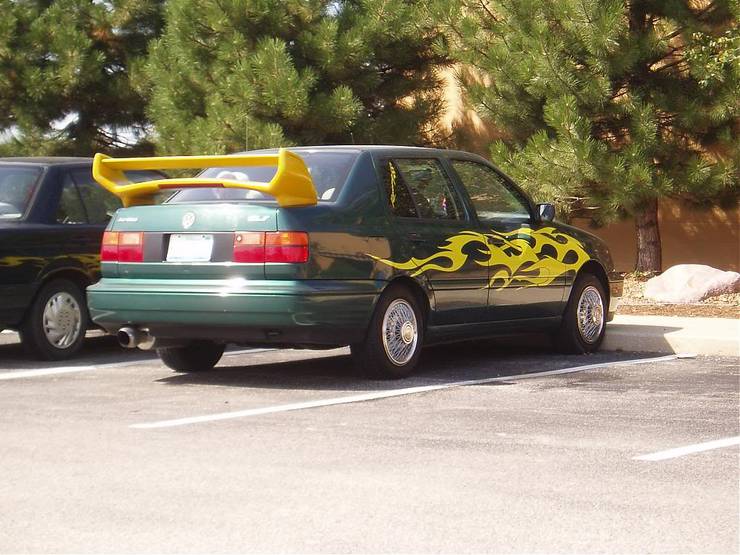 このジェッタは、トライバルデカールやキャンディペイントの時代を、凸型のワイヤーホイールを装着して凌いでいます。