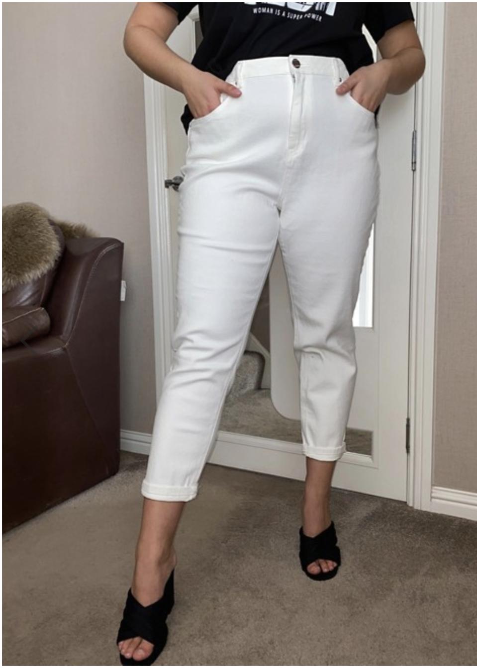 W rozmiarach od 12 do 22, te dżinsy z wysokim stanem są wykonane z popularnego, komfortowego, elastycznego denimu Simply Be – dopasowują się do skóry i są bliższe legginsom niż dżinsom, ale mają wygląd dżinsu. Posiadają łatwy zamek błyskawiczny, głębokie kieszenie i luźny krój zwężający się ku dołowi.